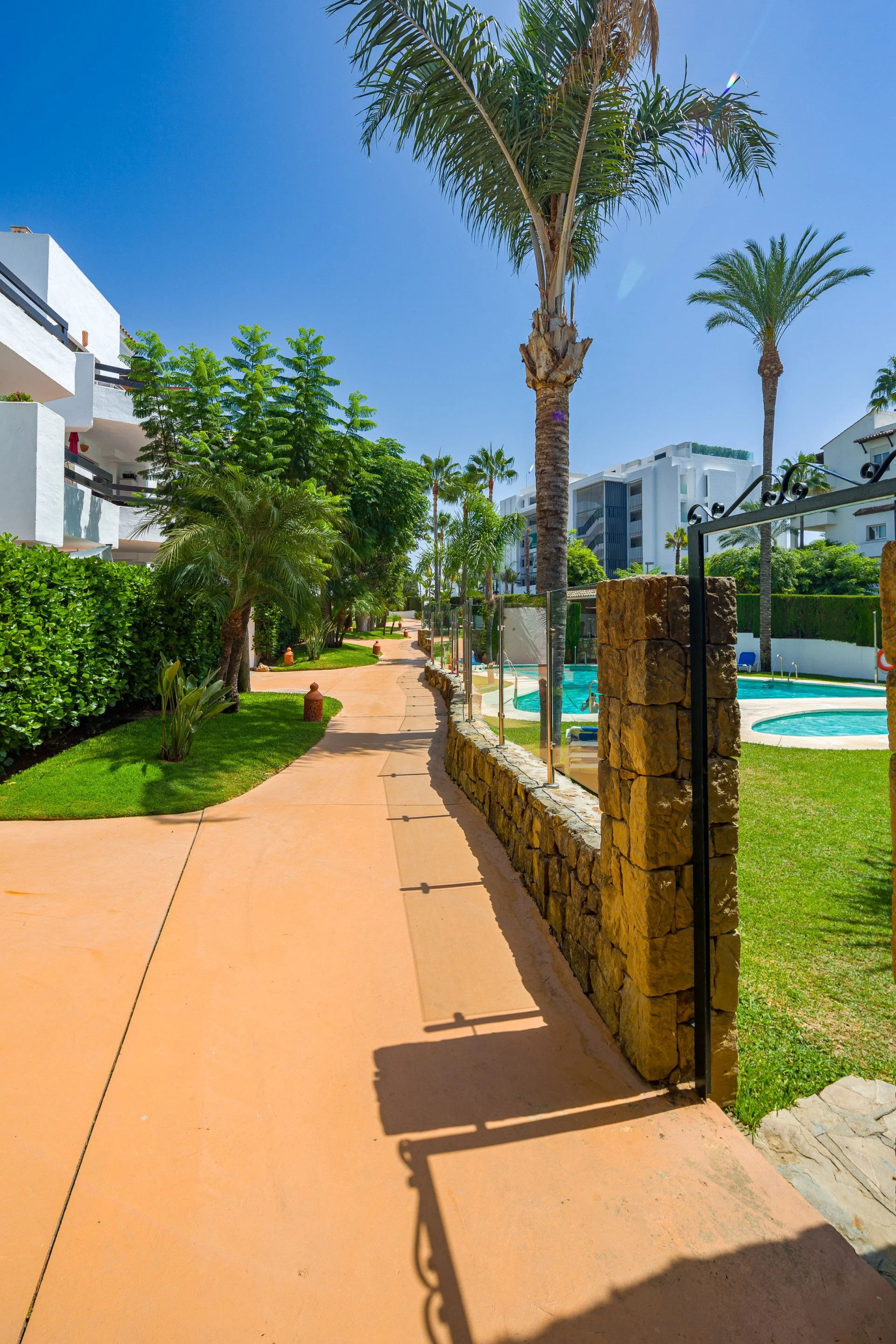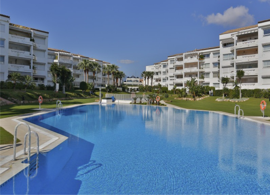 This three bedroom apartment with a private garden is located in one of the most sought after urbanisations on the New Golden Mile, between Marbella and Estepona. -